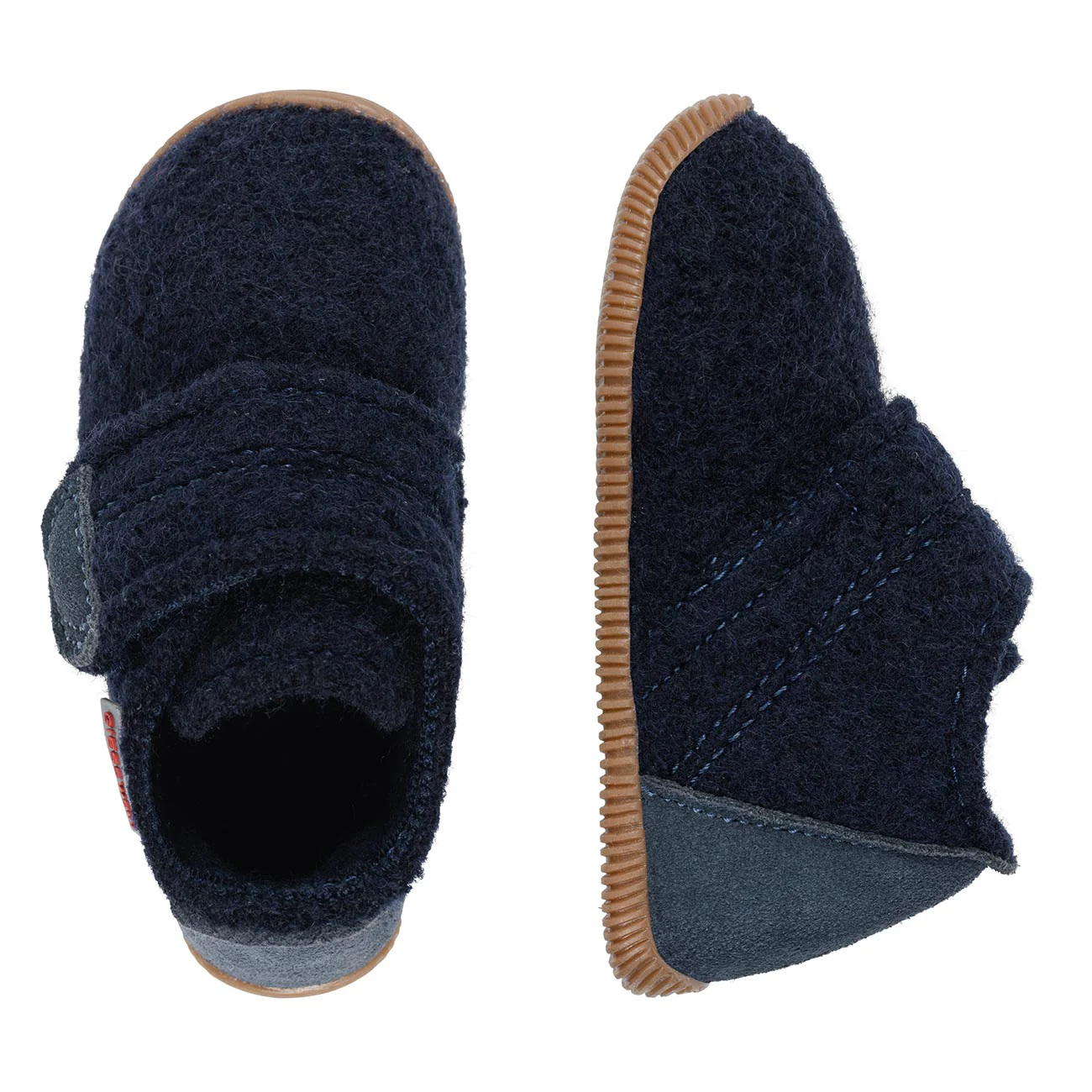 Der Kinderhausschuh Oberstaufen, besteht aus Schurwolle und einer Slim-Fit Gummisohle. Durch das Obermaterial aus feiner Schurwolle, hält dieser Schuh auch bei kälteren Temperaturen angenehm warm. Die Slim-Fit Gummisohle sorgt für guten Halt und ist etwas schmäler geschnitten. Der Kinderhausschuh ist mit einem Klettverschluss ausgestattet, sodass Kinder die Hausschuhe einfach selbst an- und ausziehen können. Optimal für schmälere Füße geeignet.